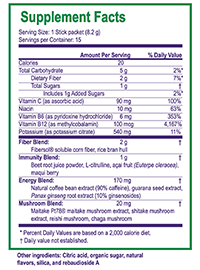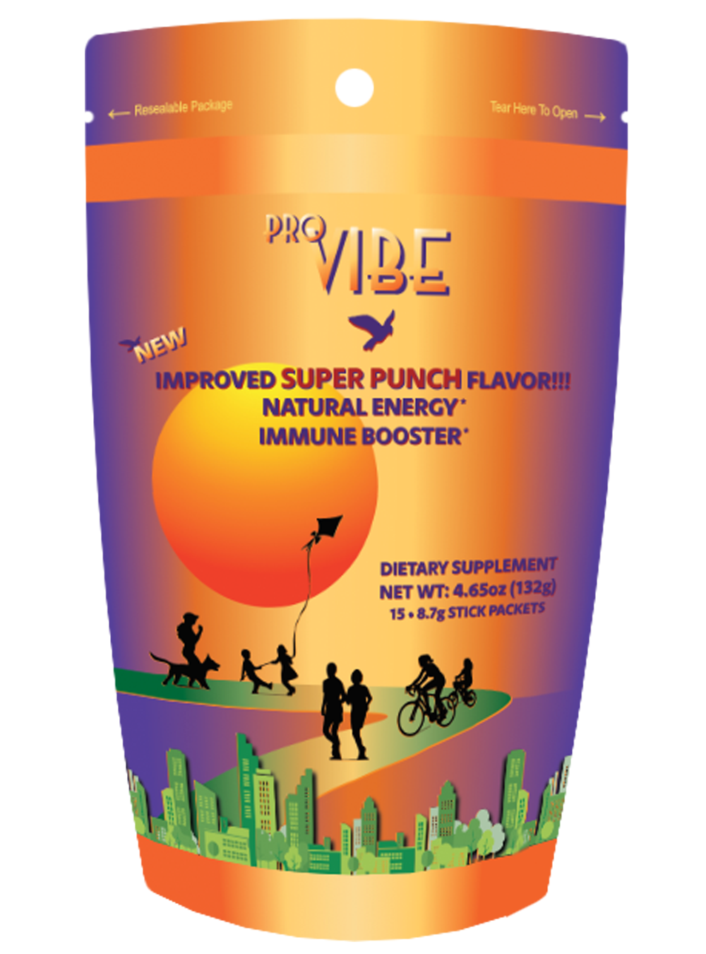 Our great tasting, natural energy and immune boosting powdered drink mix is just the thing you’ll be craving any time you feel the need for a pick me up. Easy pour packets are perfect for at home or on the go… Just add water and Feel the Vibe!
